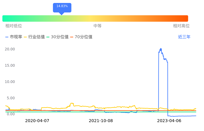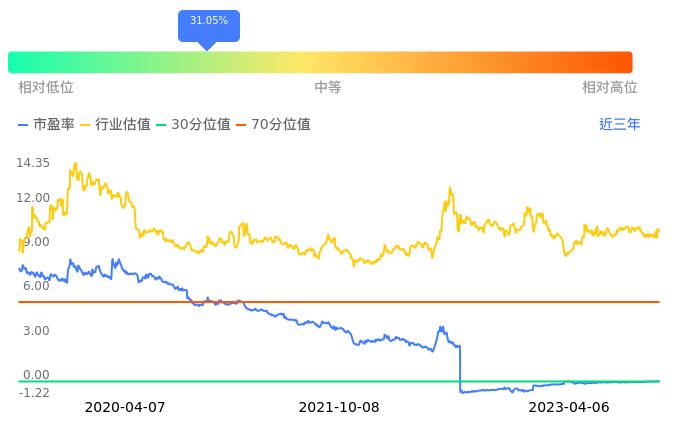 2023年04月06日,阳光城下跌1.84%收于1.60,今日成交金额8288.57万元。下文将从市盈率PETTM、市净率PB、市现率3个角度去分析公司估值情况。