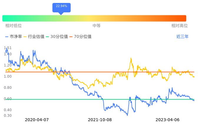 阳光城当前市净率PB为0.56,在所属的房地产开发中,市净率PB排16,前五名分别为荣盛发展市净率0.22、金科股份市净率0.27、世茂股份市净率0.31、中南建设市净率0.35、福星股份市净率0.35。阳光城当前市净率PB为0.56,超过近3年22.94%的历史数据。
