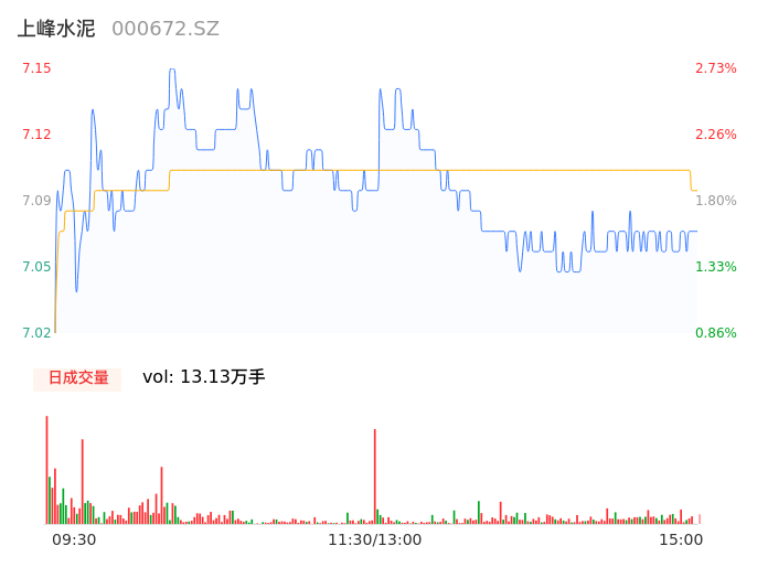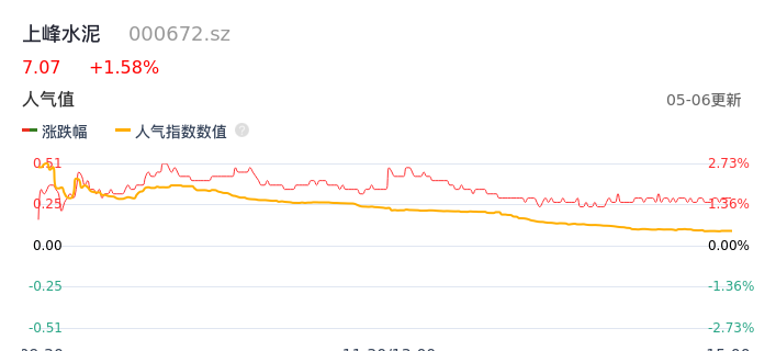 05月06日,上峰水泥收报7.07,股价涨幅1.58%,成交金额9314.09万元,换手率1.35%。