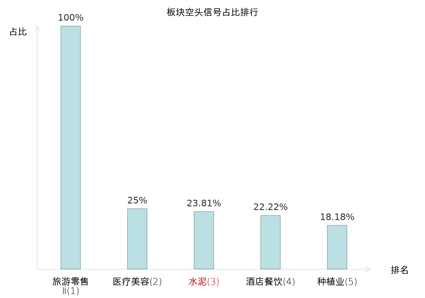 全市场所有行业板块中主力空头信号占比排名中,旅游零售Ⅱ板块位居第一。装修建材板块名次提升最快,较昨日上升112位。