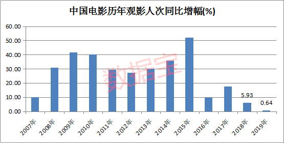 从观影人数来看,2018年度观影人次同比增幅不到6%,2019年仅有0.64%,而2017年观影人次同比增幅高达17.39%。观影人次在过去2年增幅疲软,主要与中国电影产业的疲弱有一定关系,部分电影斥巨资投入,但票房收入却十分惨淡。