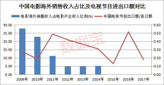 不过中国电视节目出口额远低于进口额,2017年出口额不及进口额的1/5;电影产业收入方面,自2012年以来,海外销售收入仅为国内的1/10。据国家新闻出版广电总局的数据显示,2015年国产影片在国内的票房为271.36亿元,但海外销售收入只有27.7亿元,仅为国内票房的1/10。作为文化软实力的一种体现,中国电影在全球的影响力依然不够。因此,中国电影产业未来的发展应该着眼于如何提升产业效率和影响力两方面。