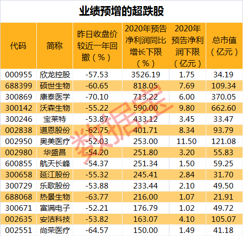 证券时报·数据宝统计显示,以最新发布的业绩预告或业绩快报为准,共44家上市公司预告净利润不小于1亿元,增长超过50%、最新价较去年以来的最高价回撤幅度在50%以上。其中5家上市公司为净利润同比扭亏为盈。