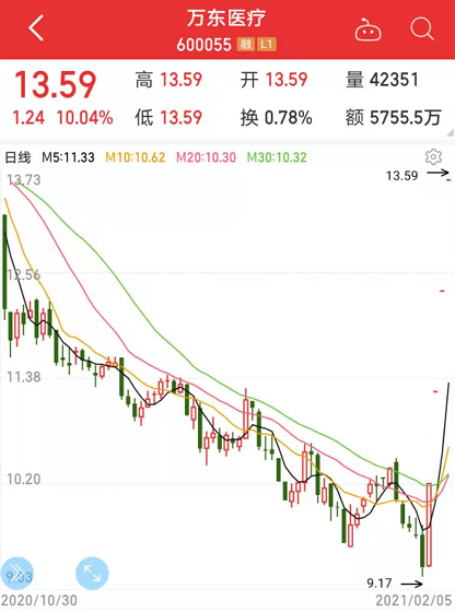 万东医疗再度一字板走势,已连续4个涨停板,截至午间收盘,涨停板上仍有24.55万手大单。万东医疗股价于2月1日发生异动,资金流入大幅增加,早盘即拉升至涨停。晚间公司公告,公司实际控制人吴光明、公司第二大股东俞熔与美的集团签署了《股份转让协议》,美的集团拟以14.6元/股的价格收购万东医疗总共29.09%的股份。以2月1日收盘价计算 ,此次股权转让溢价43%,股份转让价款供给22.97亿元。