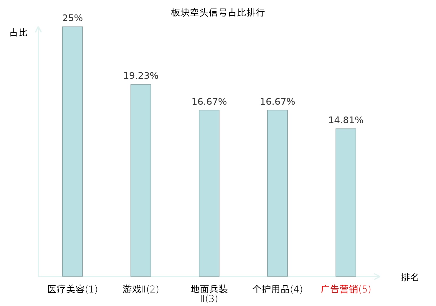 全市场所有行业板块中主力空头信号占比排名中,医疗美容板块位居第一。游戏Ⅱ板块名次提升最快,较昨日上升122位。
