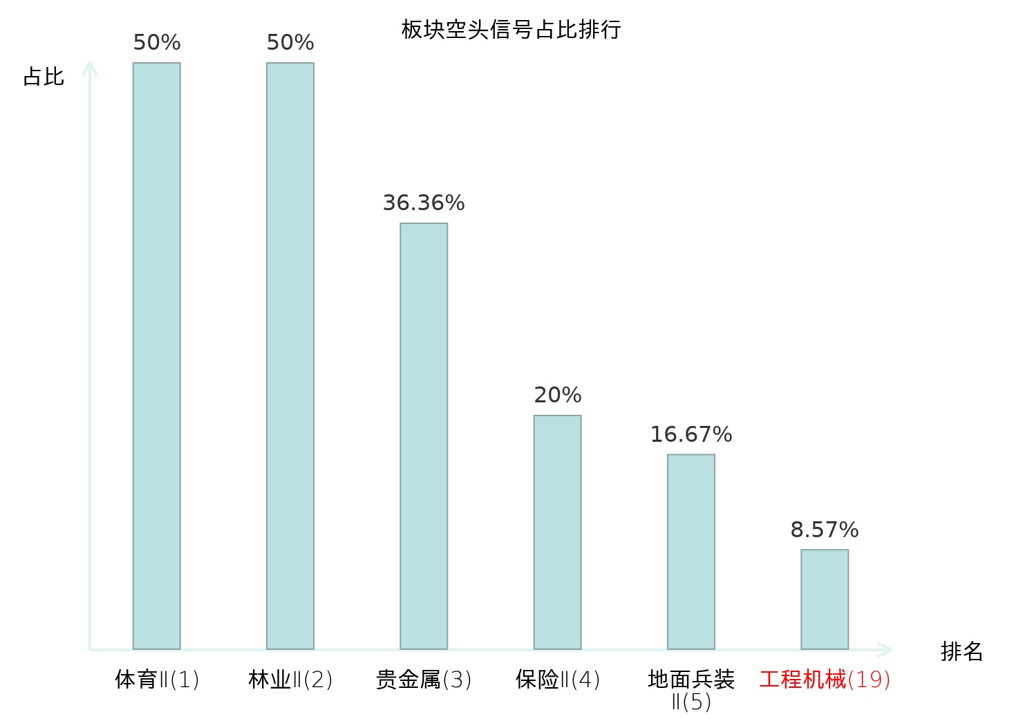 全市场所有行业板块中主力空头信号占比排名中,体育Ⅱ板块位居第一。电子化学品Ⅱ板块名次提升最快,较昨日上升110位。