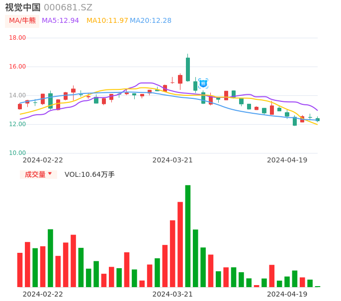 04月19日,视觉中国收报12.23,股价涨幅-1.85%,成交金额1.31亿元,换手率1.58%。