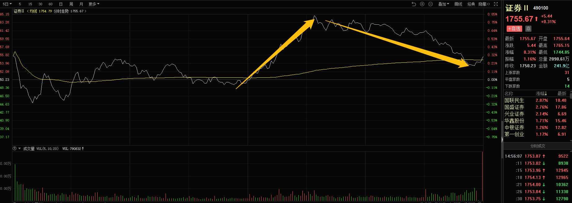 中午复盘才说完这个位置要看证券的动向,没想到下午证券就拉升翻红一度涨近1%,这也是下午指数翻红的关键方向之一。先有证券的拉升,才有随后的Ai应用方向的集体拉升大涨。这轮牛市,证券从牛市旗手沦为了渣男,时不时的异动一下,但又延续不上力,不过到了关键时刻还是得有证券表态的。既然证券今天收了一个十字星,这个多空博弈,就要看是变盘向上还是下跌中继了。大家对证券怎么看呢?