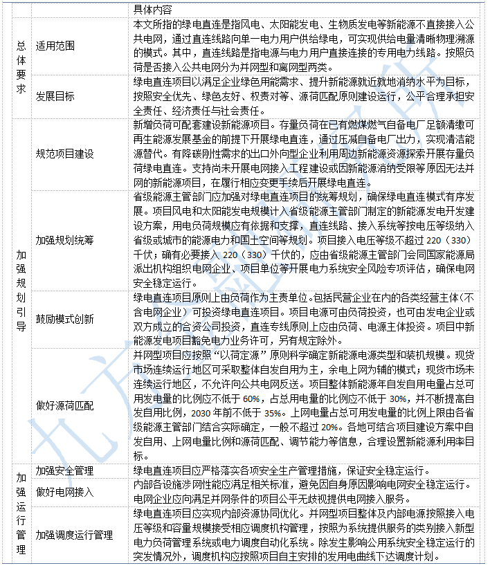 事件:国家发改委、国家能源局印发《关于有序推动绿电直连发展有关事项的通知》,探索创新新能源生产和消费融合发展模式,促进新能源就近就地消纳。主要内容整理如下: