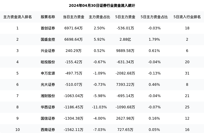 从主力资金流向来看,证券行业今日主力资金流入129.55亿元,在所有申万二级行业中排名:67/131。
