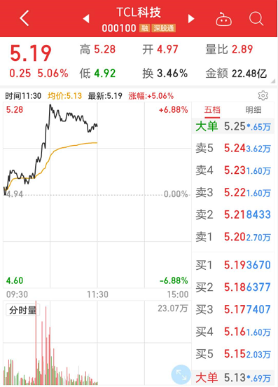 具体来看,TCL科技涨幅居首,今日早盘最高涨幅逼近7%,机构资金净流入4.16亿元。作为一只大盘股,TCL涨幅超过5%的次数少之甚少,自2018年初至今不到30次。据最新消息显示,TCL科技拟向武汉产投发行股份、可转债及支付现金方式,作价42.17亿元购买其持有的武汉华星39.95%股权。在这一利好消息刺激下,港股华星控股暴涨190%。