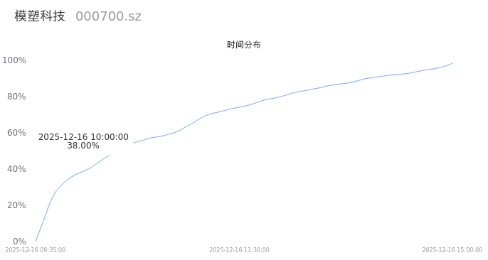 000700模塑科技2025年12月16日成交55.93万手,成交金额5.96亿,相较昨日放量2.08万手,换手率6.09%,成交清淡。