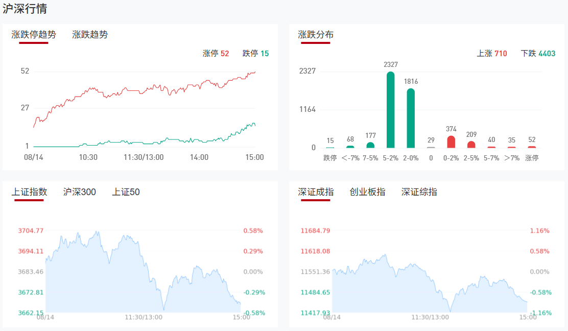 市场全天震荡调整,创业板指领跌,沪指3700点得而复失,终结8连阳。沪深两市全天成交额2.28万亿,较上个交易日放量1283亿。盘面上,市场热点较为杂乱,个股跌多涨少,全市场超4600只个股下跌。从板块来看,脑机接口概念股震荡走强,创新医疗8天5板。数字货币概念股一度冲高,吉大正元涨停。机器人概念股局部活跃,卧龙电驱涨停创历史新高。下跌方面,军工股集体调整,天秦装备跌超10%。
