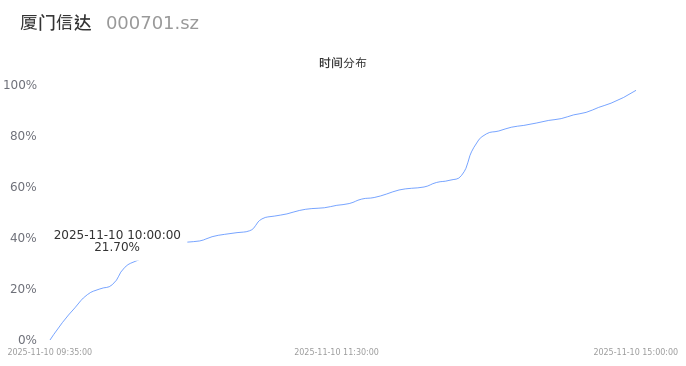 000701厦门信达2025年11月10日成交31.61万手,成交金额1.96亿,相较昨日放量2.17万手,换手率4.73%,成交清淡。