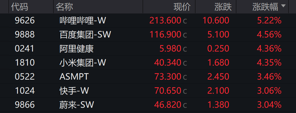 米集团涨幅居前。该公司公告称,创始人、董事长兼CEO雷军个人斥资超1亿港元增持小米集团260万股,平均价为每股约38.58港元,持股比例增加至23.26%。