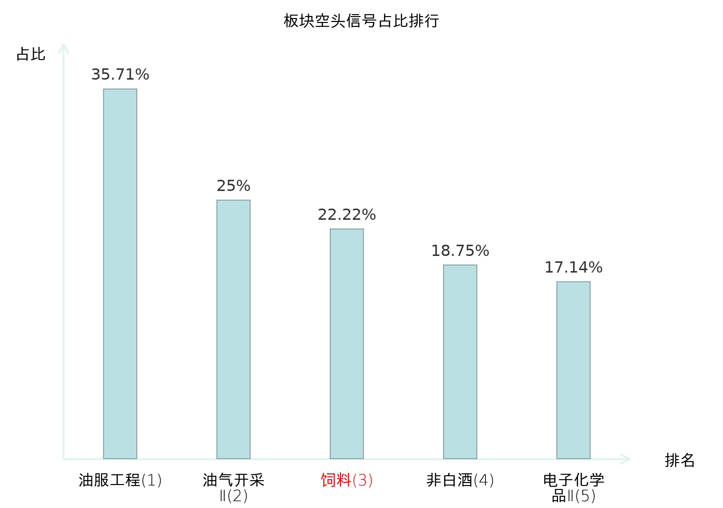 全市场所有行业板块中主力空头信号占比排名中,油服工程板块位居第一。电池板块名次提升最快,较昨日上升104位。