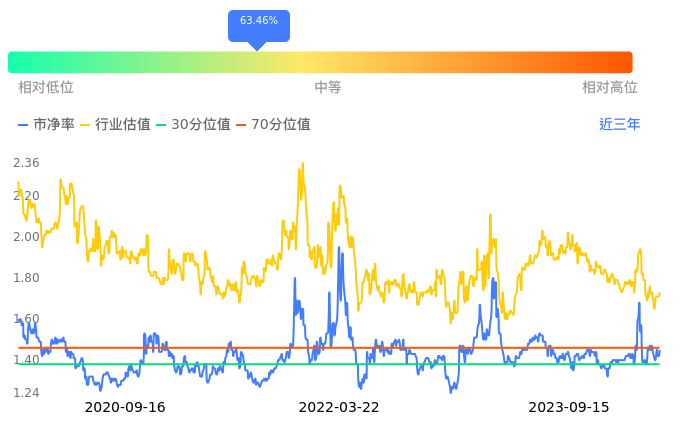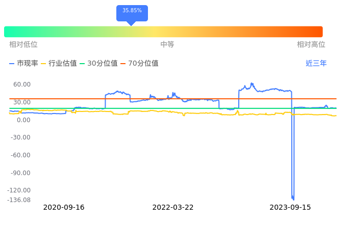 2023年09月15日,浙江震元上涨1.44%收于8.45,今日成交金额8636.19万元。下文将从市盈率PETTM、市净率PB、市现率3个角度去分析公司估值情况。