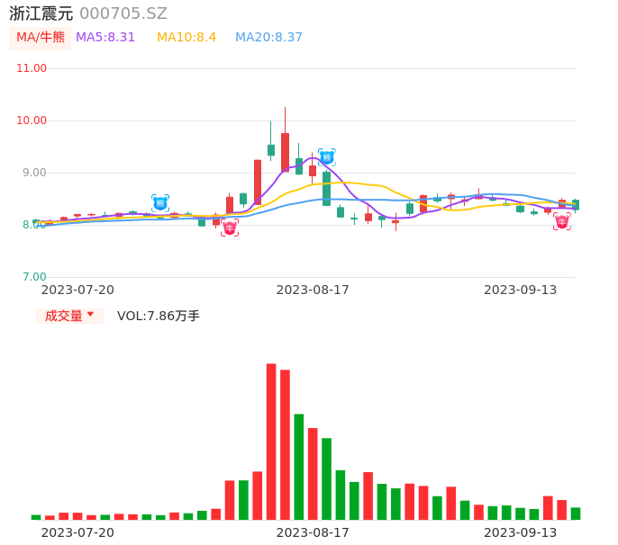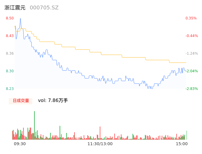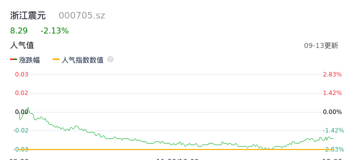 09月13日,浙江震元收报8.29,股价涨幅-2.13%,成交金额6549.72万元,换手率2.79%。