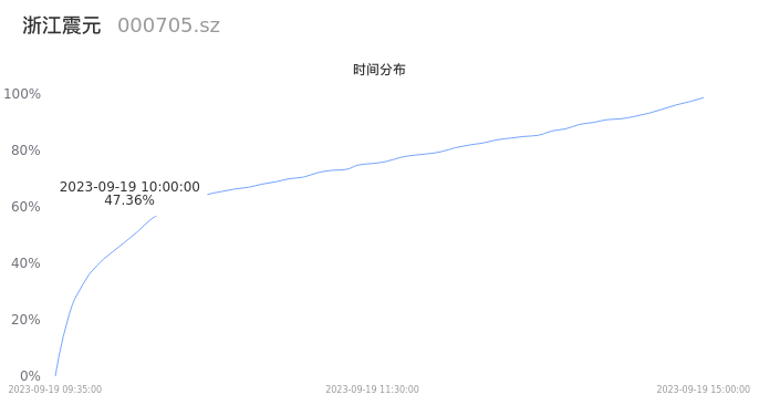 根据成交分布分析,该股票当天放量成交,成交清淡。时间上看,早盘前半小时成交量占据当天总成交量的47.36%;价格上看,成交呈现左偏峰。成交分布分析主要研究股票成交的分布特性,不具有预测功能,请知悉。
