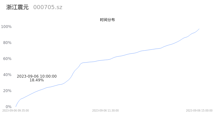 000705浙江震元2023年09月06日成交9.23万手,成交金额7757.62万元,相较昨日放量4586手,换手率3.27%,成交清淡。