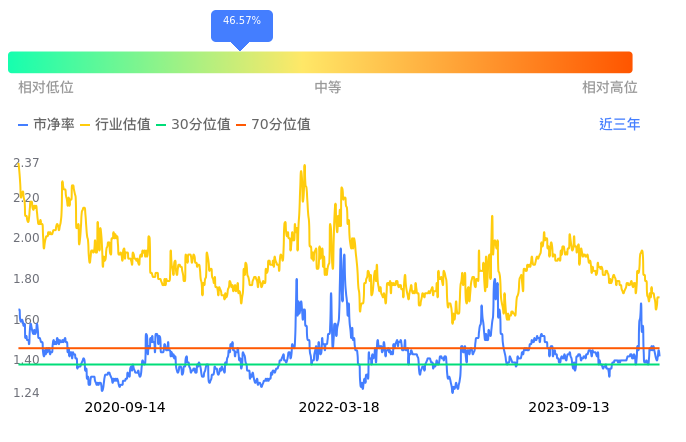 2023年09月14日,浙江震元上涨0.48%收于8.33,今日成交金额6650.67万元。下文将从市盈率PETTM、市净率PB、市现率3个角度去分析公司估值情况。