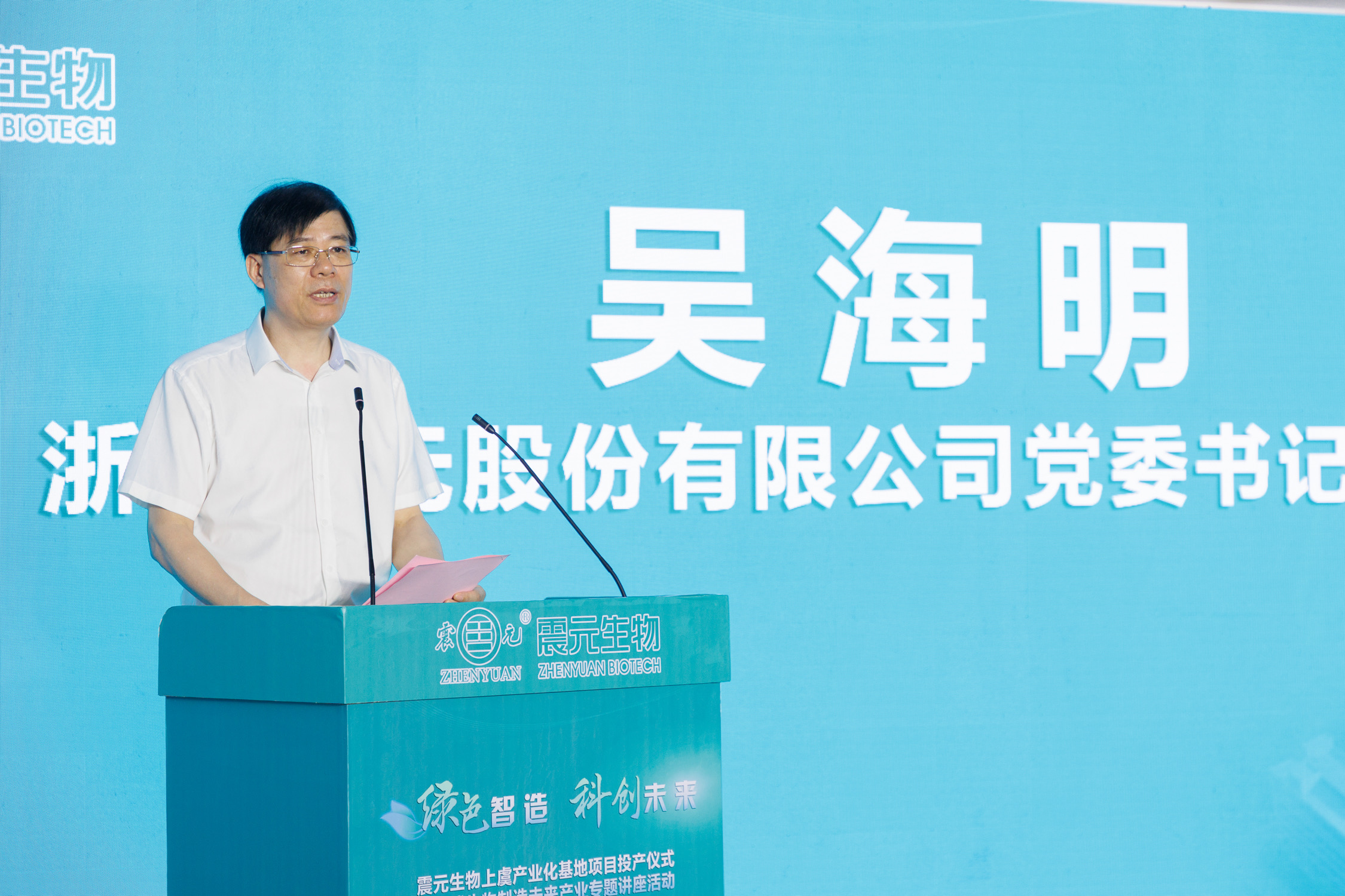 震元生物成立于2022年1月,是浙江震元控股子公司。作为浙江震元深耕合成生物领域的核心项目,震元生物上虞产业化基地于2023年2月开工建设,总投资超6亿元。浙江震元党委书记、董事长吴海明介绍,项目依托国内顶尖科研资源,运用先进合成生物与发酵工程技术,建成全国首个千吨级组氨酸生物合成产业化装置,开发左旋多巴绿色新工艺,L-茶氨酸正在推进新食品原料申请,累计申请国内外发明专利22项,获授权12项,科技成果登记4项。