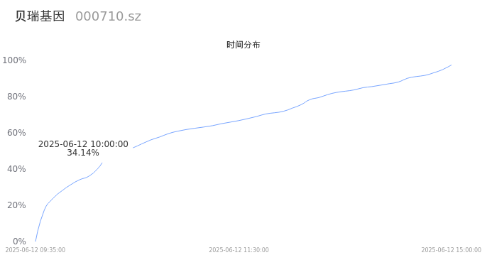 000710贝瑞基因2025年06月12日成交29.07万手,成交金额4.00亿,相较昨日缩量6.66万手,换手率8.89%,成交清淡。