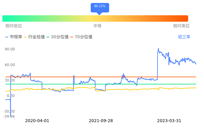 2023年03月31日,京蓝科技上涨0%收于2.57,今日成交金额3145.71万元。下文将从市盈率PETTM、市净率PB、市现率3个角度去分析公司估值情况。