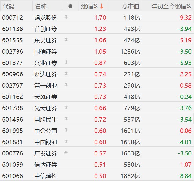 格隆汇2月13日|A股市场券商股普涨,其中,锦龙股份、首创证券、东吴证券、国信证券涨超1%。