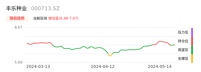 我们来看一下该股的九方特色指标强弱趋势的情况:丰乐种业近日从观望区上穿到持仓区。股价短期站稳多头区域,上升动能仍较为充足,可积极关注。后续重点关注上方压力位:7.07元是否能突破上攻。