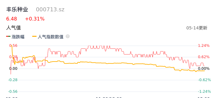 05月14日,丰乐种业收报6.48,股价涨幅0.31%,成交金额5669.29万元,换手率1.42%。