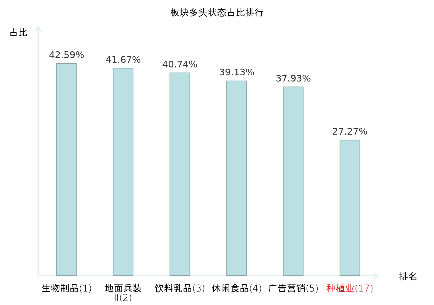 全市场所有行业板块中主力多头状态占比排名中,生物制品板块位居第一。黑色家电板块名次提升最快,较昨日上升65位。