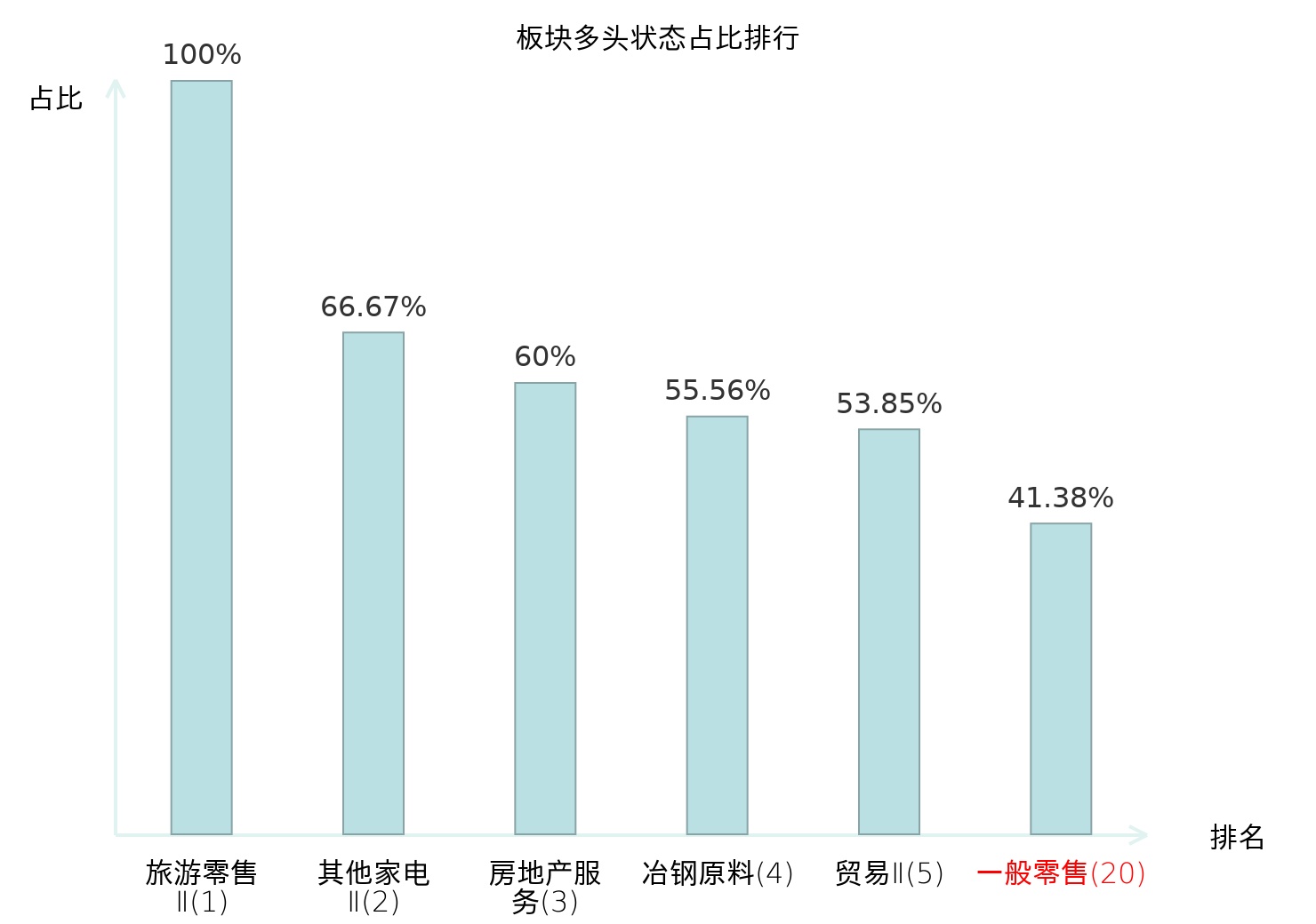 全市场所有行业板块中主力多头状态占比排名中,旅游零售Ⅱ板块位居第一。保险Ⅱ板块名次提升最快,较昨日上升65位。