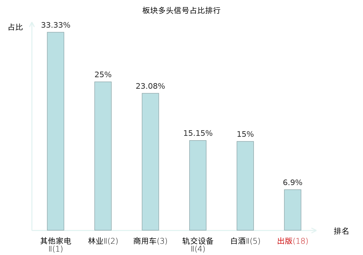 全市场所有行业板块中主力多头信号占比排名中,其他家电Ⅱ板块位居第一。其他家电Ⅱ板块名次提升最快,较昨日上升128位。