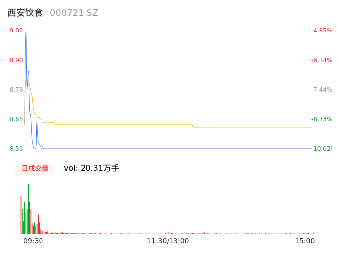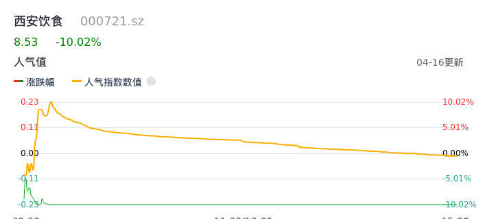 04月16日,西安饮食收报8.53,股价涨幅-10.02%,成交金额1.75亿元,换手率4.64%。