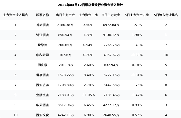 西安饮食今日净流出4242.11万元,主力占比6.90%,在行业内排名:10/10;5日净流入2648.55万元,主力占比0.57%,在行业内排名:4/10。