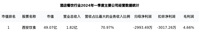 西安饮食最新报告期数据为一季度,下表汇总了酒店餐饮行业内市值靠前的公司一季度主要经营数据