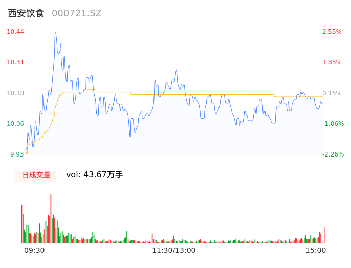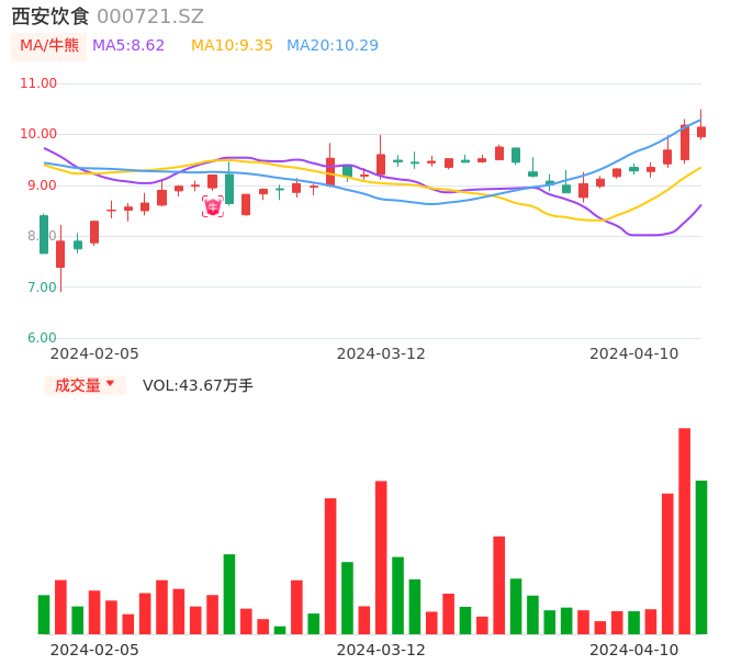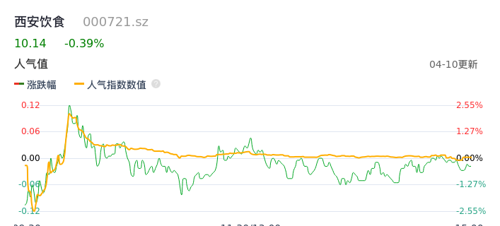 04月10日,西安饮食收报10.14,股价涨幅-0.39%,成交金额4.44亿元,换手率9.98%。