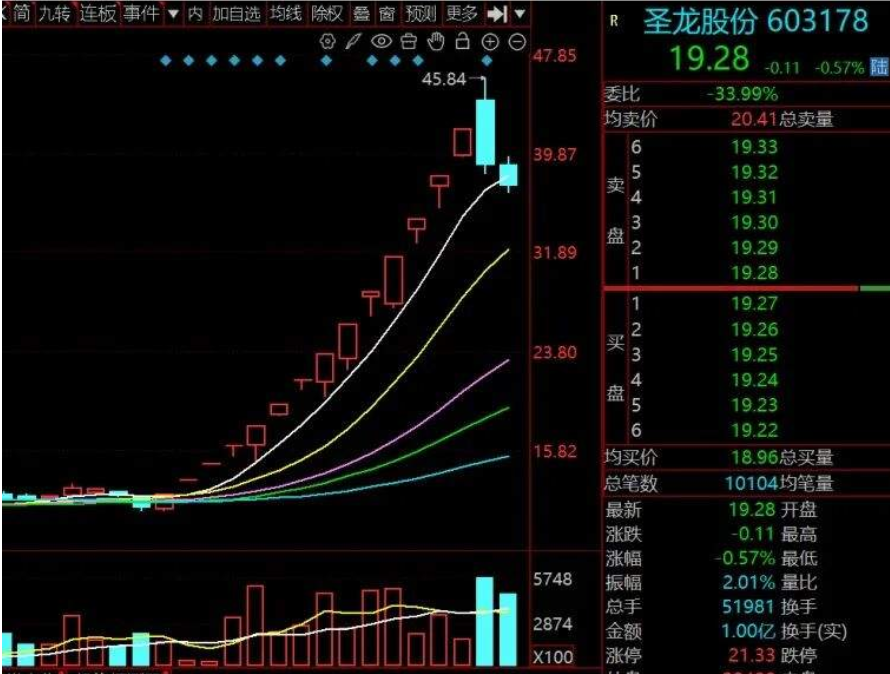 一般四到六板时,大都存在一次爆量考验,实际换手达到40%以上即可判定为爆量。