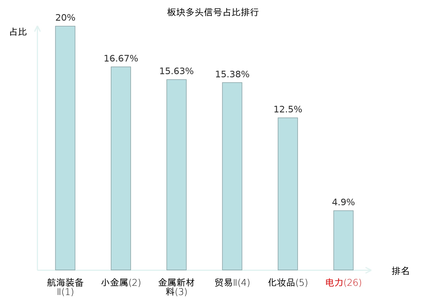 从主力宝信号数据分析,湖南发展所属的电力板块中共5只股票发出主力多头信号,主力多头信号占比在全行业中排名第26位,较昨日上升11位。较高的排名表明主力当日买入意愿较强,排名上升可能反映了主力对电力板块态度的积极调整。全市场所有行业板块中,航海装备Ⅱ板块的主力多头信号占比最高,位居第一;航海装备Ⅱ板块名次提升最快,较昨日上升115位。这些变动揭示了不同行业间主力资金动向的趋势,为投资者提供了关于市场情绪和潜在投资机会的重要线索。