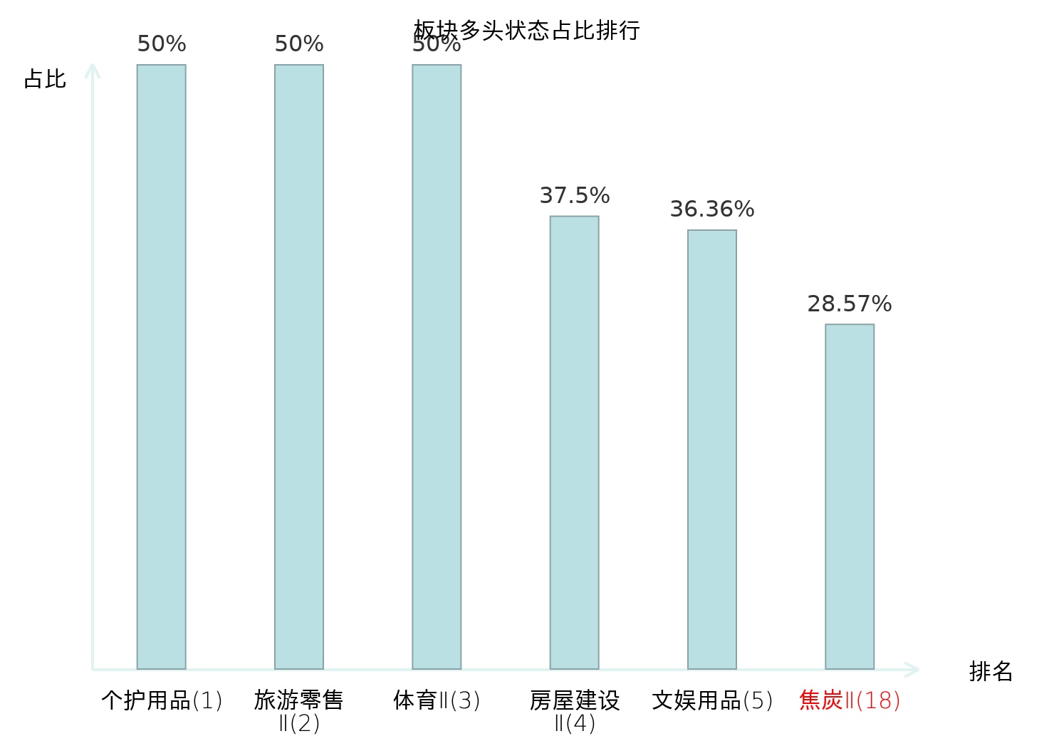 全市场所有行业板块中主力多头状态占比排名中,个护用品板块位居第一。焦炭Ⅱ板块名次提升最快,较昨日上升68位。