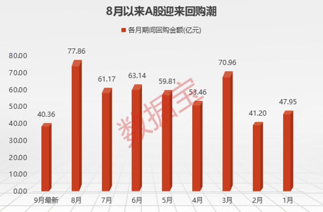 仅在8月内,已有240家公司真金白银实施回购,单月回购金额近78亿元,创年内新高。而9月份延续回购潮态势,截至最新,单月已经实施的回购金额超40亿元。