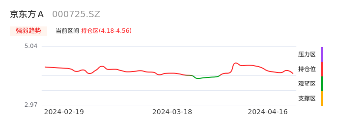 值得注意的是:2024年04月长城证券的分析师,首次发布关于京东方A的研究报告,标题为:京东方A(000725):盈利能力持续修复 看好AMOLED&MLED业务贡献增量。
