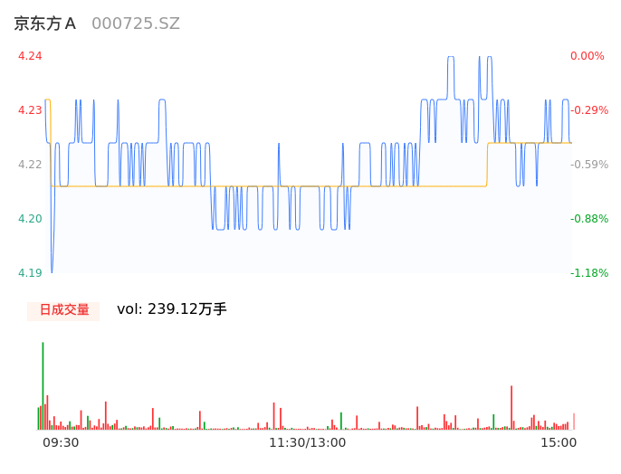 04月22日,京东方A收报4.22,股价涨幅-0.47%,成交金额10.08亿元,换手率0.65%。