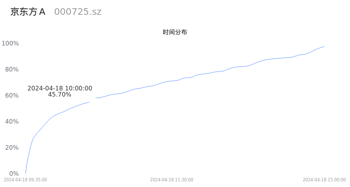000725京东方A2024年04月18日成交445.09万手,成交金额19.32亿元,相较昨日放量67.60万手,换手率1.21%,成交清淡。