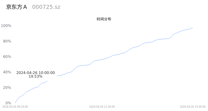000725京东方A2024年04月26日成交358.24万手,成交金额15.60亿元,相较昨日放量5.03万手,换手率0.97%,成交清淡。