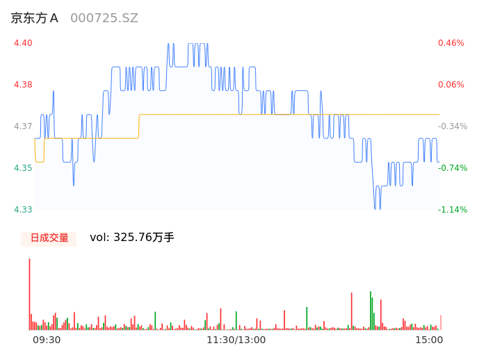 05月13日,京东方A收报4.36,股价涨幅-0.46%,成交金额14.23亿元,换手率0.88%。