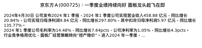 值得注意的是:2024年05月东北证券的李玖/李明分析师,首次发布关于京东方A的研究报告,标题为:京东方A(000725):一季度业绩持续向好 面板龙头起飞在即。