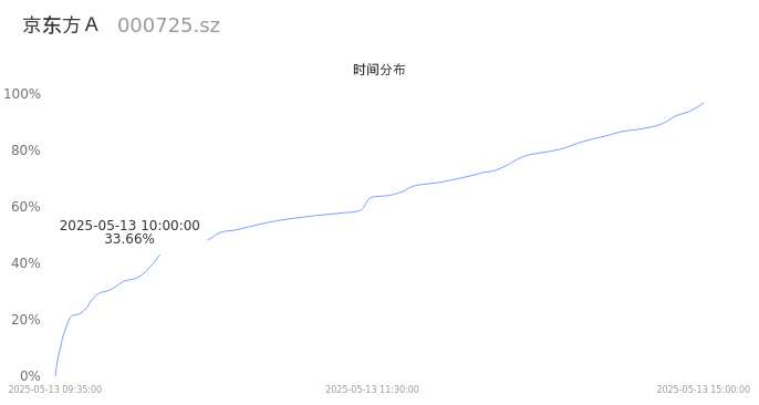 000725京东方A2025年05月13日成交362.41万手,成交金额14.27亿,相较昨日缩量89.52万手,换手率0.98%,成交清淡。