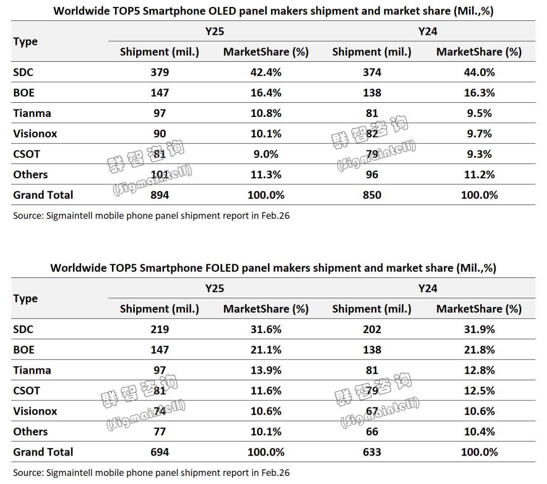格局: 三星领跑稳居第一,天马凭客户结构 + 产能释放加速突围